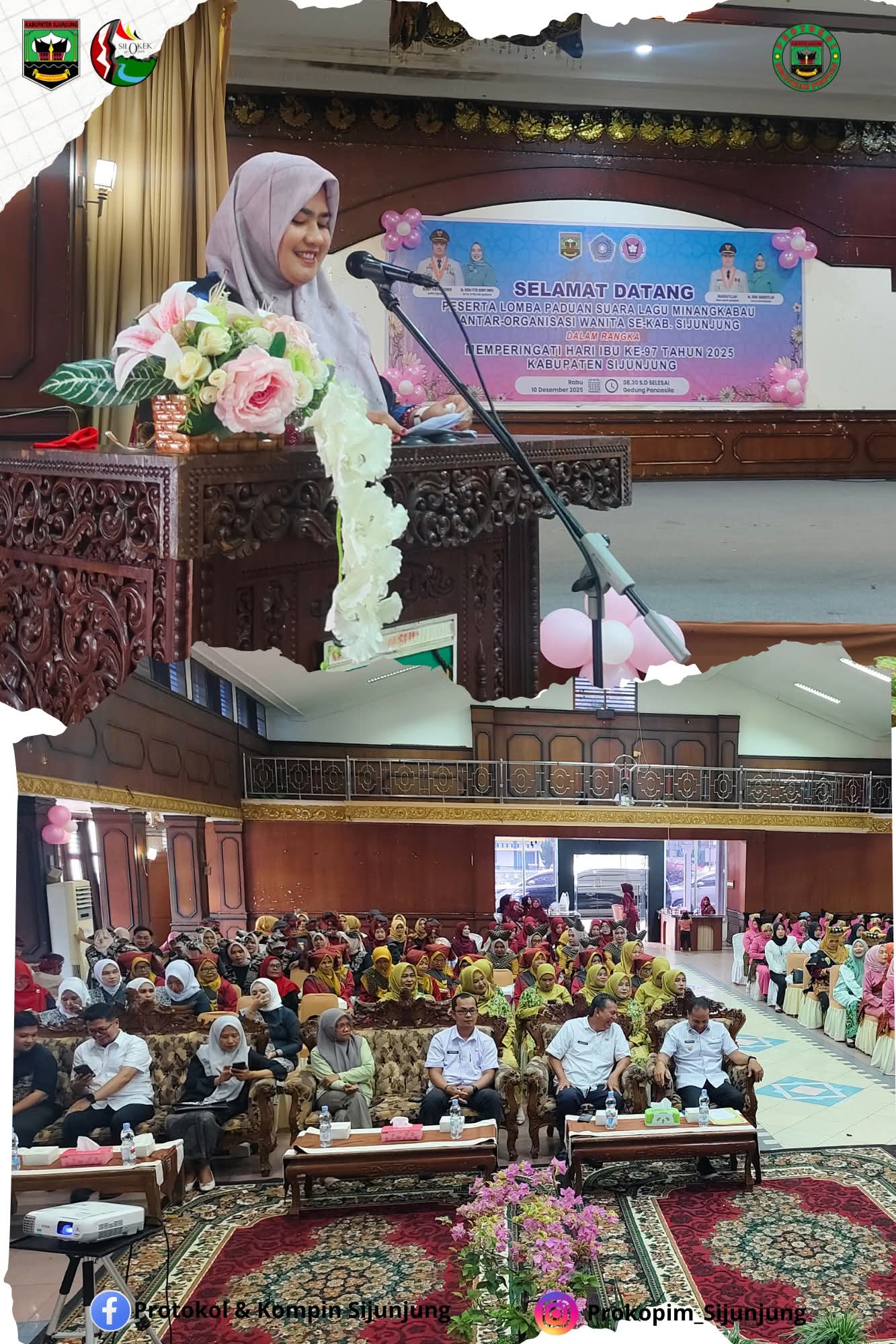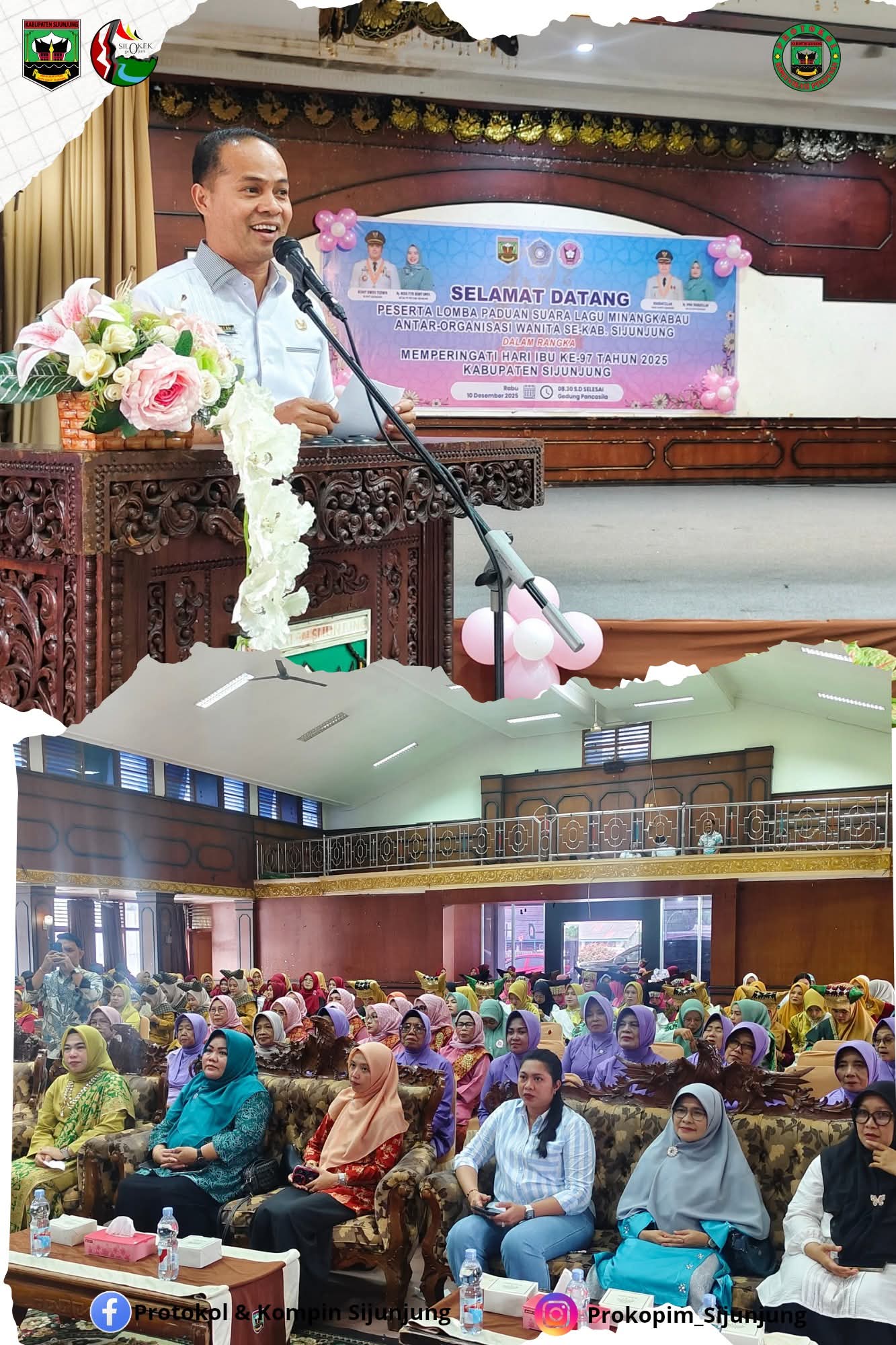 JURNAL SUMBAR| Sijunjung – Wakil Bupati Sijunjung, H. Iraddatillah, S. Pt., membuka secara resmi lomba paduan suara lagu Minangkabau antar Organisasi Wanita se Kabupaten Sijunjung dalam rangka memperingati Hari Ibu ke-97 tahun 2025 yang bertempat di Gedung Pertemuan Pancasila Muaro Sijunjung pada Rabu 10 Desember 2025.