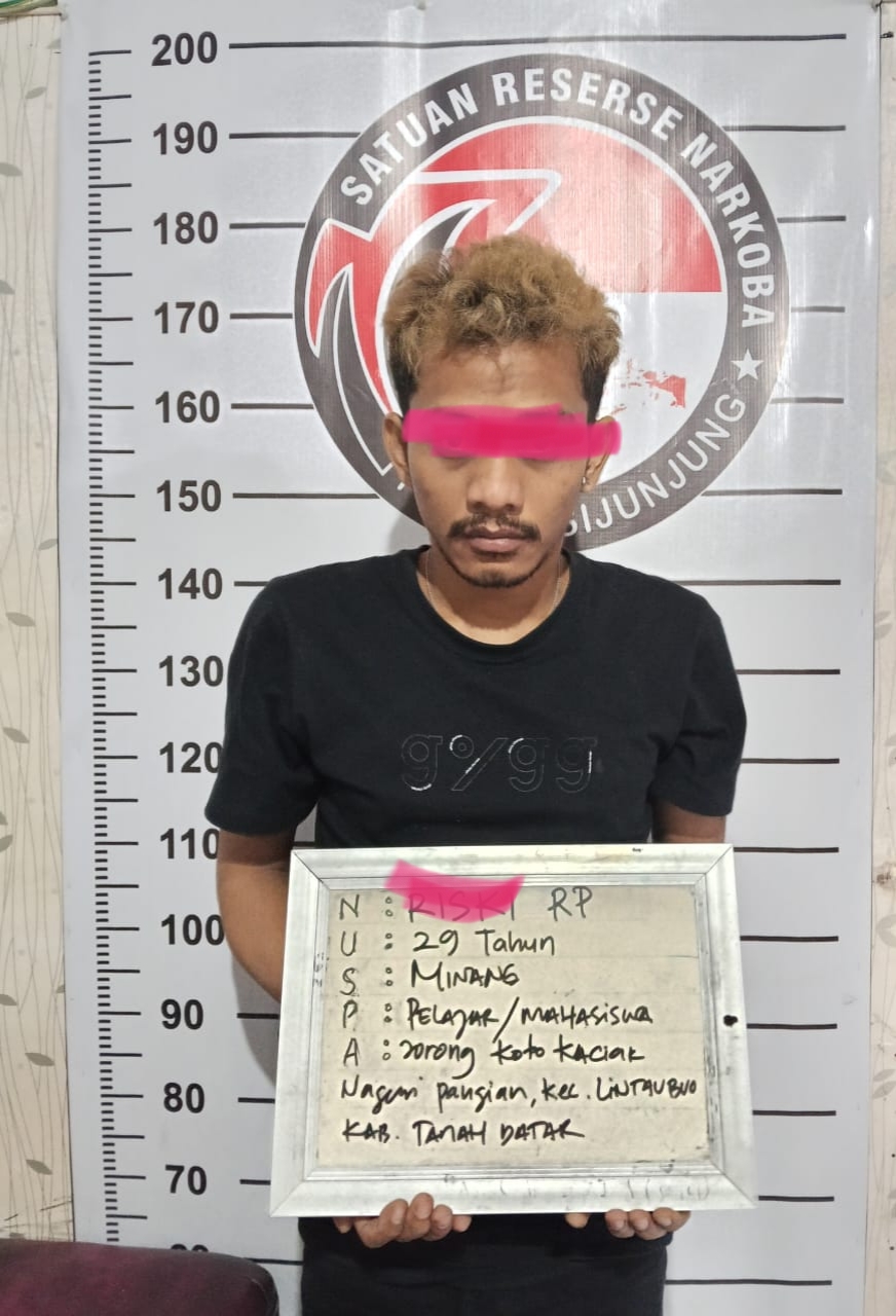 Kasat Reserse Narkoba Polres Sijunjung< AKP Syafwal, S.H., menjelaskan, “penangkapan dilakukan berawal adanya laporan dari masyarakat yang resah dengan aktivitas peredaran Narkotika di wilayahnya tersebut, kemudian berdasarkan inpormasi tersebut, saya langsung memimpin team opsnal saya untuk melakukan penyelidikan, dan kemudian berhasil mengamankan seorang laki-laki berinisial “R” (29) pekerjaan Mahasiswa beralamat Lintau Buo Kabupaten Tanah Datar.