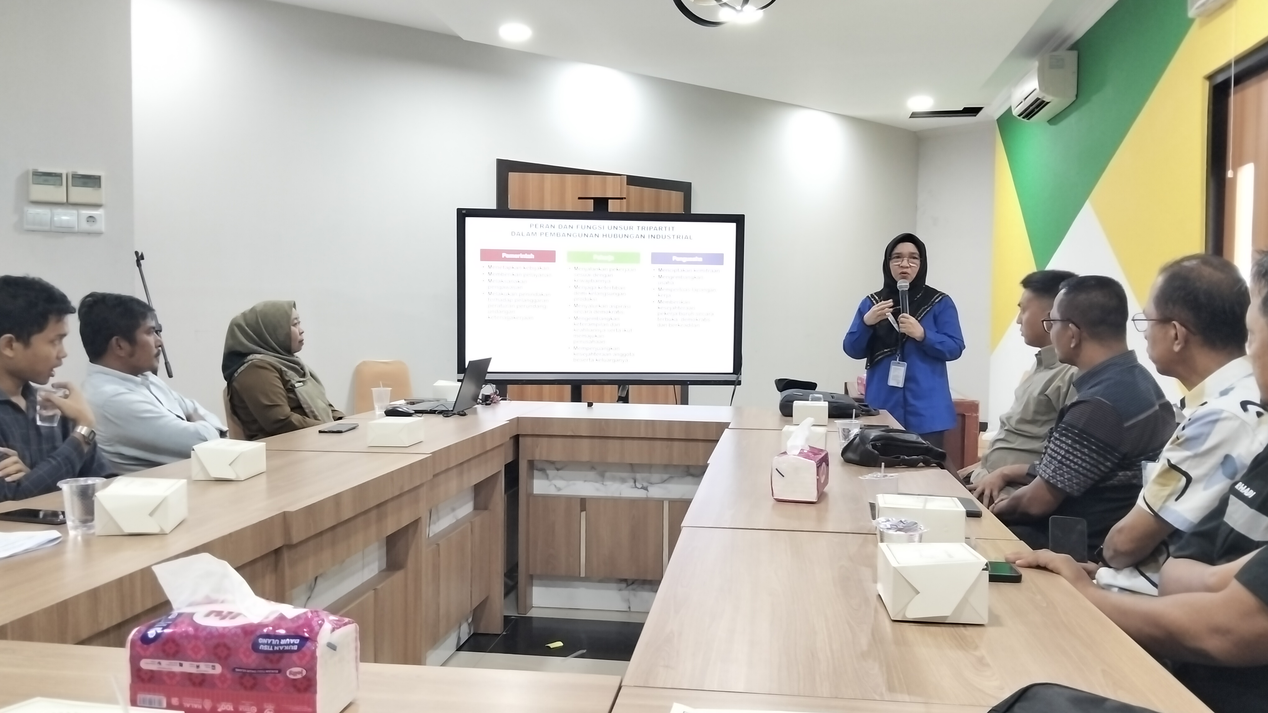 Dihadapan Kadis Nakertrans Sijunjung, David Rinaldo, S.STP., Kabid Hubungan Industrial Disnaker, Anisa Putra, para pimpinan perusahaan dan pengurus SPSI perusahaan dan DPC K.SPSI Kabupaten Sijunjung, Elen juga mengupas dasar hukum kelembagaan Tripartit.