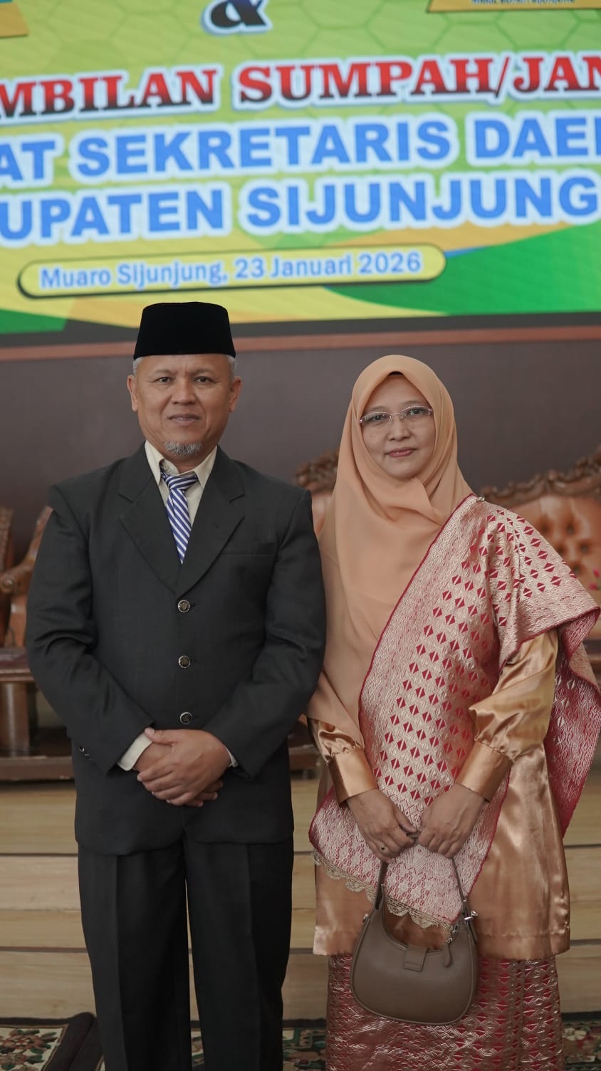 Pelantikan tersebut berdasarkan Keputusan Bupati Sijunjung Nomor : 821.22/006/BKPSDM-2026 tanggal 22 Januari 2026, diangkat dalam jabatan Penjabat Sekretaris Daerah Kabupaten Sijunjung, Jaheri, S.Sos,M.Si.