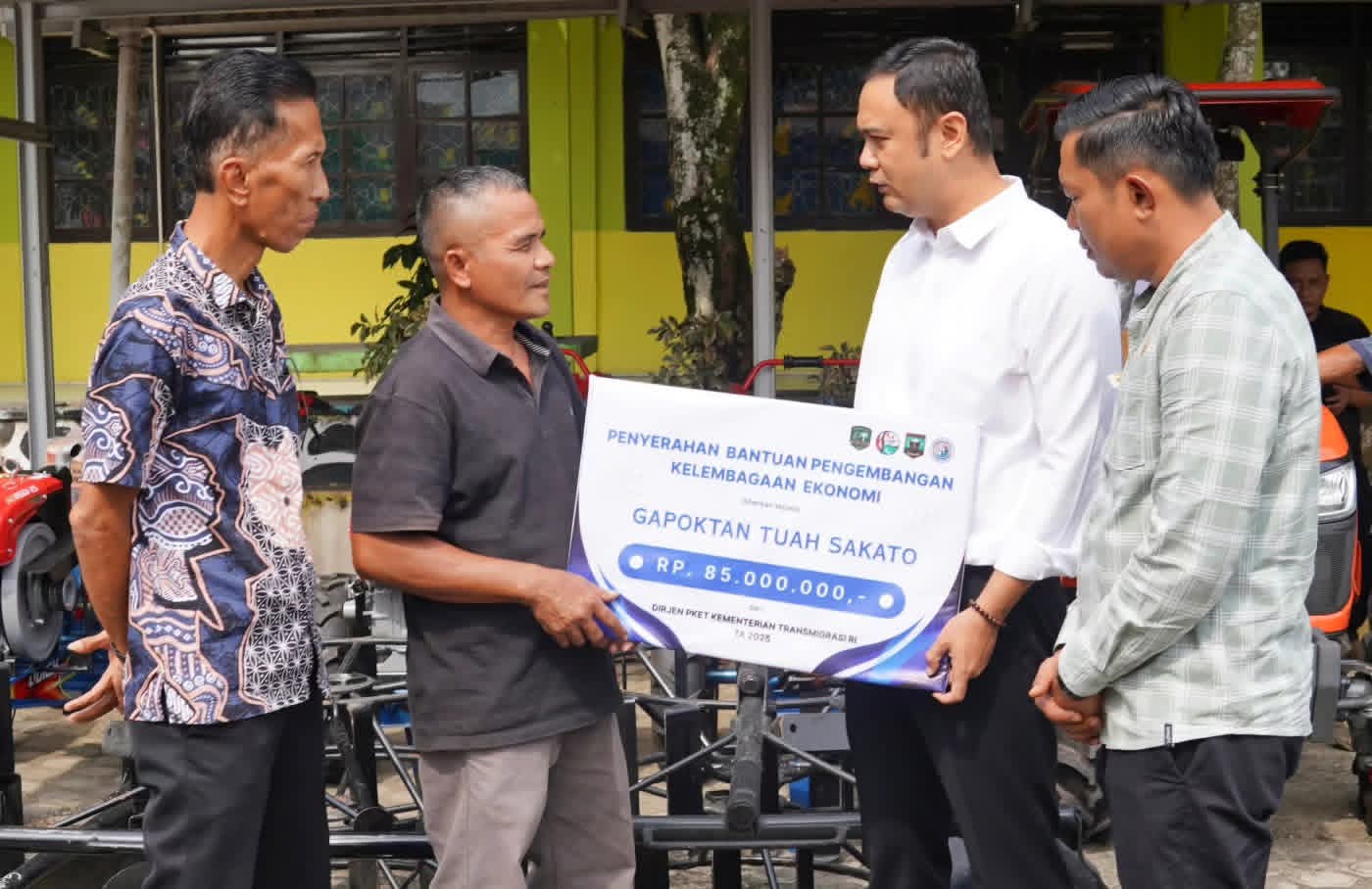 JURNAL SUMBAR| Sijunjung – Permohonan Bupati Sijunjung, Sumatera Barat, Benny Dwifa Yuswir, S.STP., M.Si., kepada pemerintah pusat (Pempus) mulai dipenuhi. Presiden Republik Indonesia, Prabowo Subianto melalui Direktorat Pengembangan Kelembagaan Ekonomi Transmigrasi Kementrian Transmigrasi Republik Indonesia memberikan bantuan bagi kelompok lembaga ekonomi di kawasan Transmigrasi Kabupaten Sijunjung berupa peralatan sebesar Rp570.700.000,-