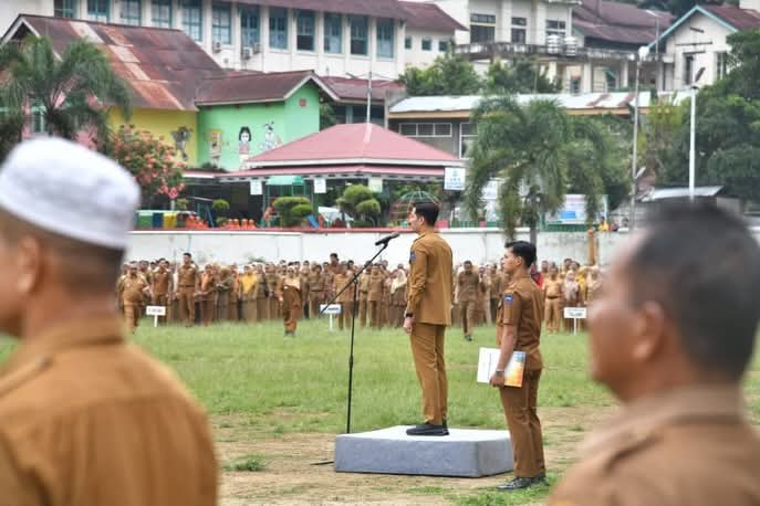 JURNAL SUMBAR| Sawahlunto –WaliKota Sawahlunto, Sumatera Barat, Riyanda Putra, menyampaikan arahan peningkatan kinerja Aparatur Sipil Negara (ASN) dalam apel gabungan di Lapangan Ombilin pada Senin (5/1/2026).