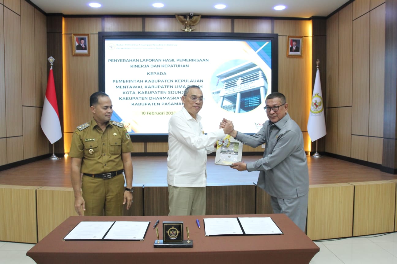 JURNAL SUMBAR| Sijunjung – Badan Pemeriksan Keuangan (BPK) RI perwakilan Sumatera Barat menyerahkan Laporan Hasil Pemeriksaan (LHP) atas Pemeriksaan Kinerja dan Kepatuhan terhadap Belanja Barang dan Jasa, serta Belanja Modal Tahun Anggaran 2025 bagi Pemerintah Daerah Kabupaten Sijunjung.