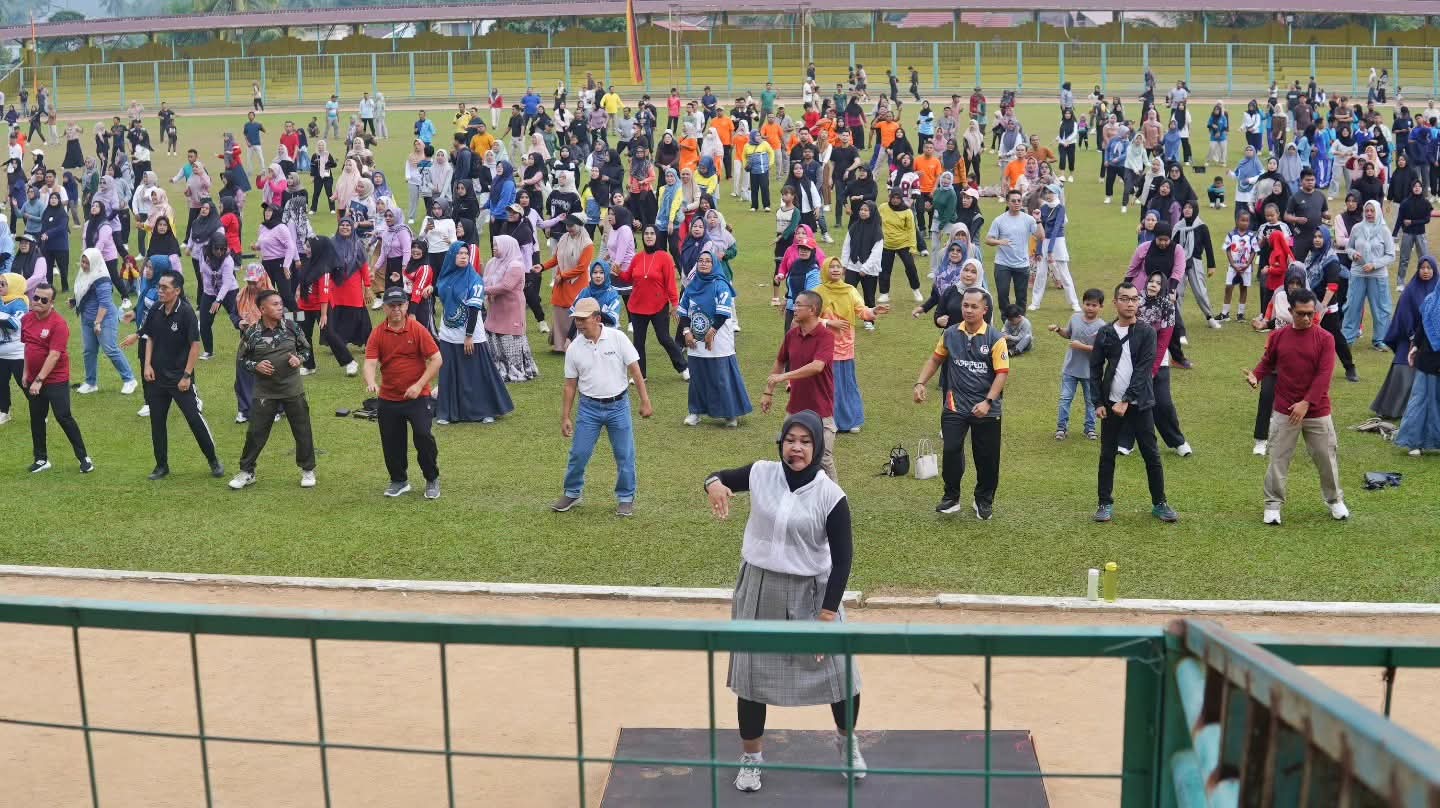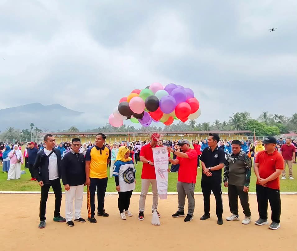 Rangkaian Kegiatan HJK Sijunjung ke-77 dilaunching, yang ditandai pelepasan balon keudara dan senam bersama yang dipimpin Bupati Benny Dwifa Yuswir