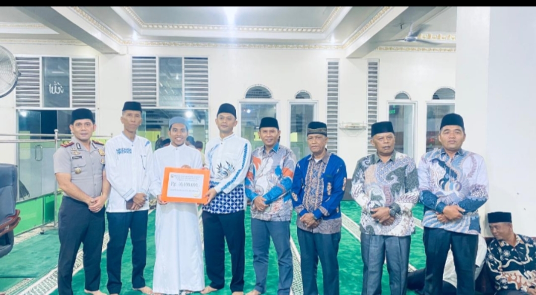 Kapolres diwakili Wakapolres selaku Ketua TSR V Kabupaten Sijunjung, terlihat menyerahkan bantuan dari Pemkab Sijunjung saat Sambangi Masjid Baitul Makmur Nagari Mundam Sakti