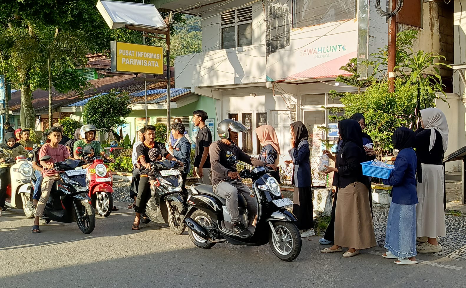Ketua OSIS SMAN 1 Sawahlunto, Sondang Pahmadika Simamora, menyatakan takjil yang dibagikan ini dari donasi anggota OSIS, pembina atau guru dan orangtua.