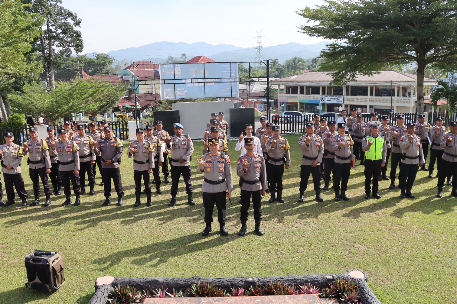 Kegiatan tersebut dilaksanakan di lapangan apel Mapolres Sijunjung dan dipimpin langsung oleh Kapolres Sijunjung AKBP Wllian Harbensyah, S.IK., M.H., serta diikuti oleh Waka Polres Sijunjung Kompol Deni Akhmad Hamdani,S.Kom., S.IK., seluruh Pejabat Utama (PJU) dan Para Kapolsek Jajaran serta seluruh personel Polres Sijunjung.