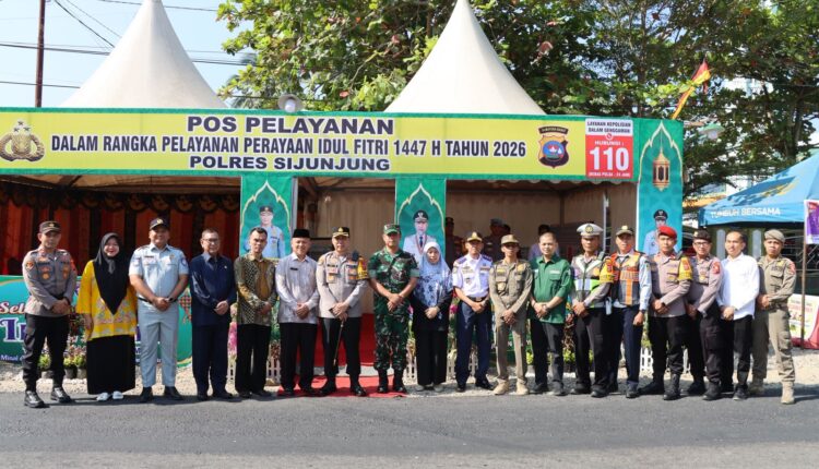 JURNAL SUMBAR| Sijunjung — Dalam rangka memastikan kesiapan pelaksanaan pelayanan arus mudik dan perayaan Hari Raya Idul Fitri 1447 Hijriyah, Kepala Kepolisian Resort (Kapolres) Sijunjung AKBP Willian Harbensyah S.IK., M.H., bersama rombongan Forkopimda Kabupaten Sijunjung, melaksanakan peninjauan Pos Pelayanan Perayaan Hari Raya Idul Fitri 1447 Hijriyah, yang ada di Wilayah Kabupaten Sijunjung, pada Jumat (13/3/2026).