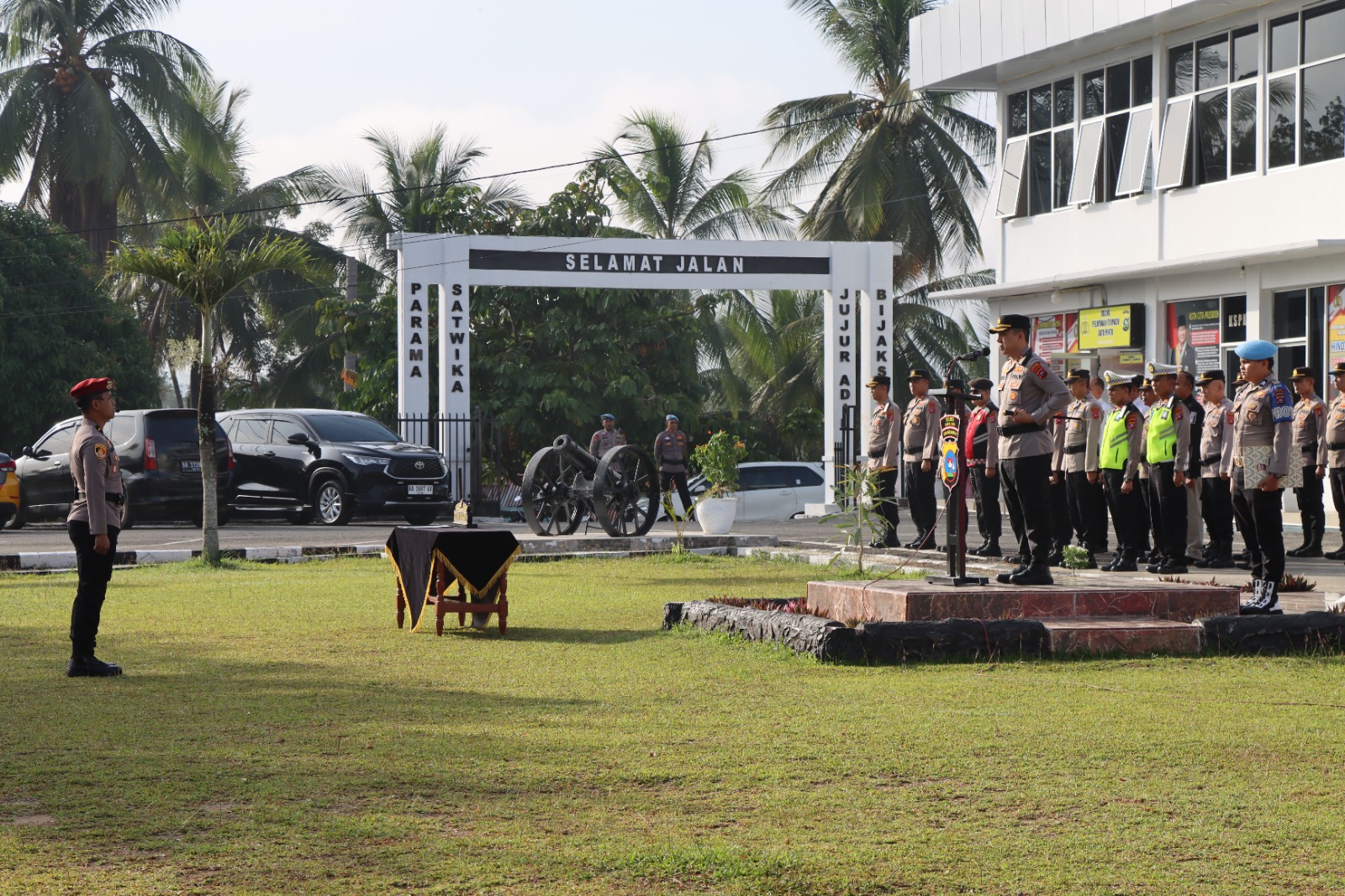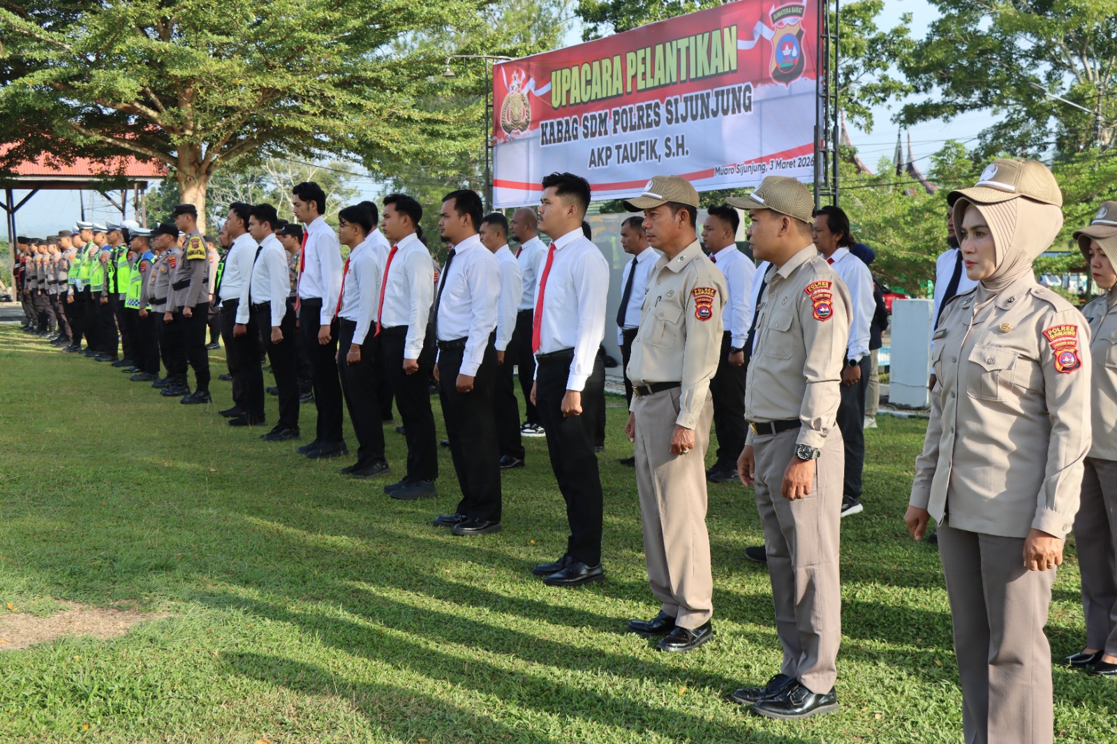 Upacara pelantikan jabatan Kepala Bagian Sumber Daya Manusia (Kabag SDM) Polres Sijunjung yang di jabat oleh AKP Taufik, S.H., itu bertempat Di lapangan Apel Mapolres Sijunjung, pada Selasa (3/3/2026) pukul 08.00 WIB.