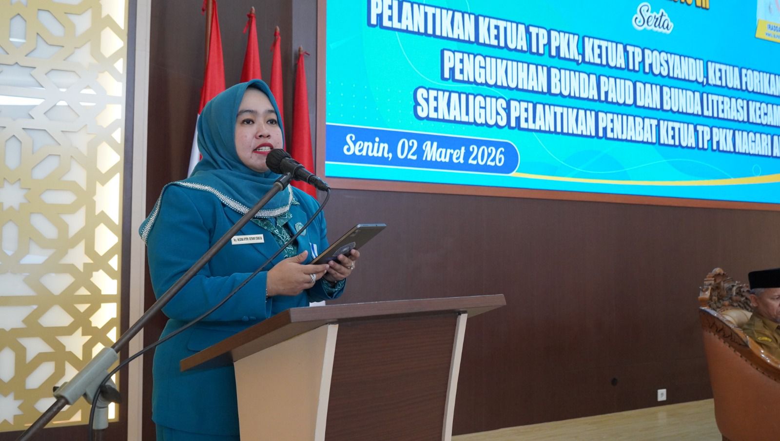 JURNAL SUMBAR| Sijunjung – Ketua TP PKK Kabupaten Sijunjung, Sumatera Barat, Ny. Nedia Fitri Benny Dwifa melantik Ketua TP PKK Kecamatan, Ketua TP Posyandu dan Ketua Forikan Kecamatan Koto VII, Kupitan, Lubuk Tarok dan Tanjung Gadang di Balairung Lansek Manih, pada Senin (2/3/2026).