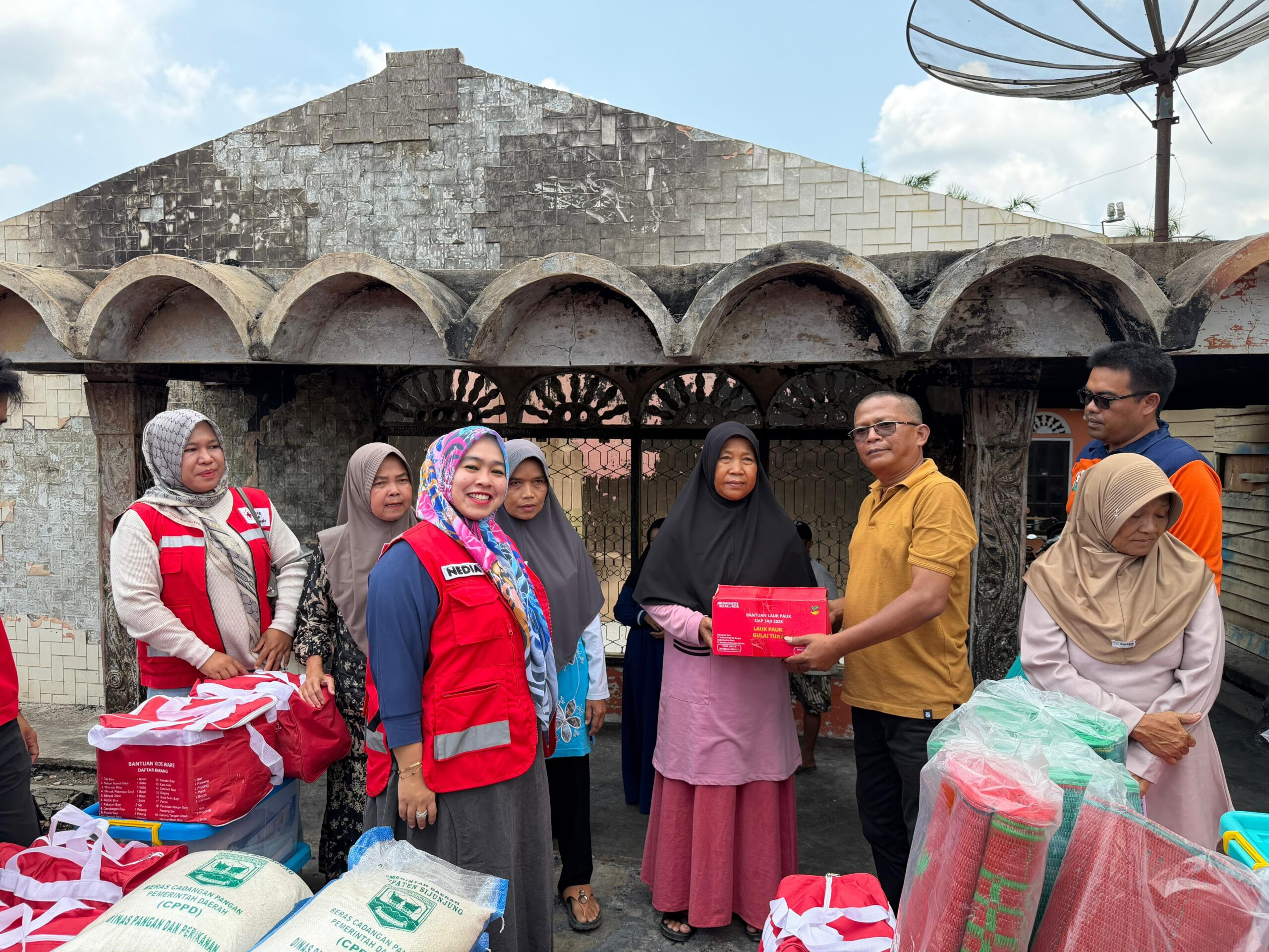 Ia menjelaskan, bantuan yang disalurkan berasal dari Pemerintah Daerah melalui Dinas Sosial, BPBD, PMI, serta Baznas Kabupaten Sijunjung.