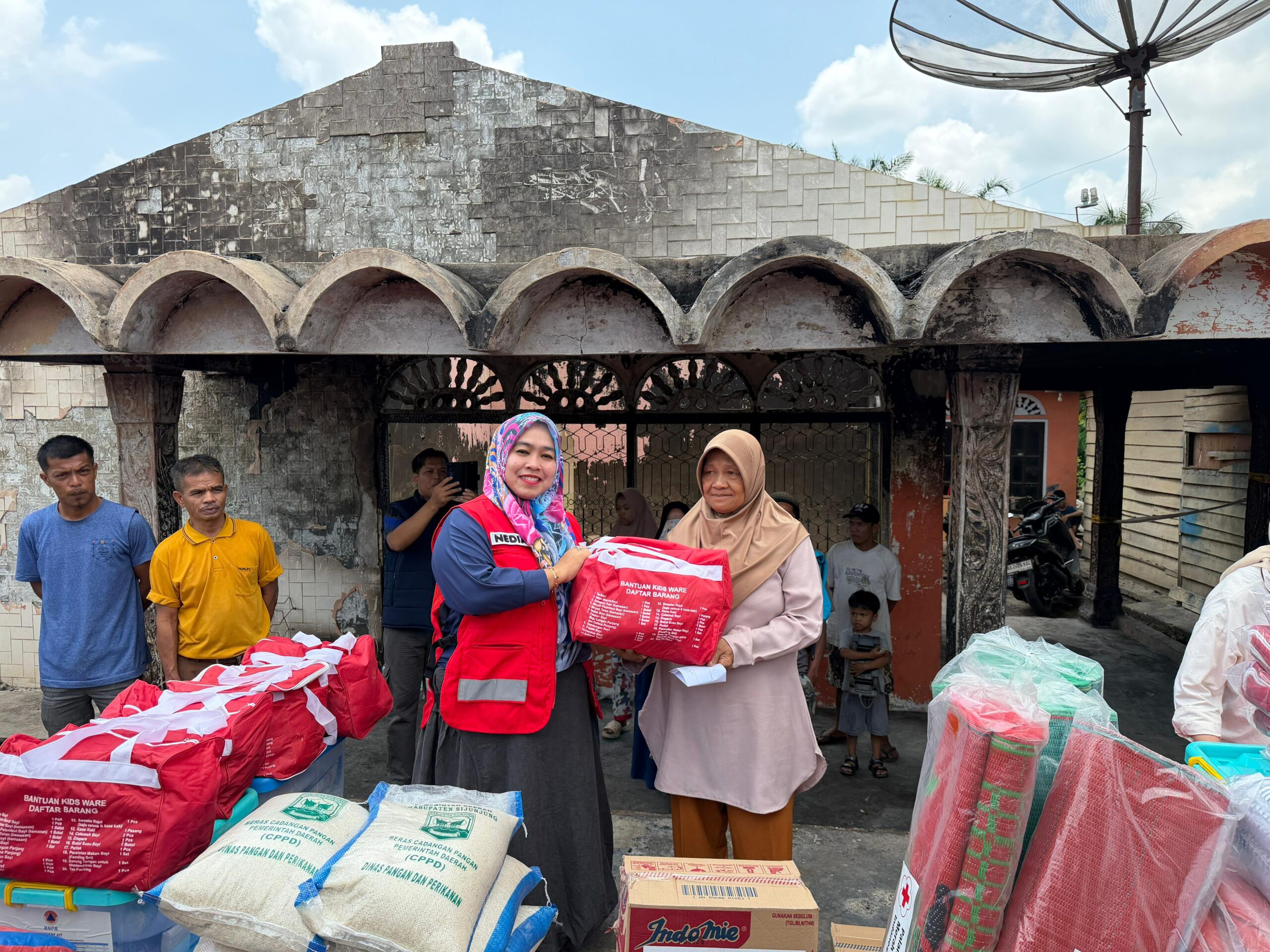 Ia menjelaskan, bantuan yang disalurkan berasal dari Pemerintah Daerah melalui Dinas Sosial, BPBD, PMI, serta Baznas Kabupaten Sijunjung.