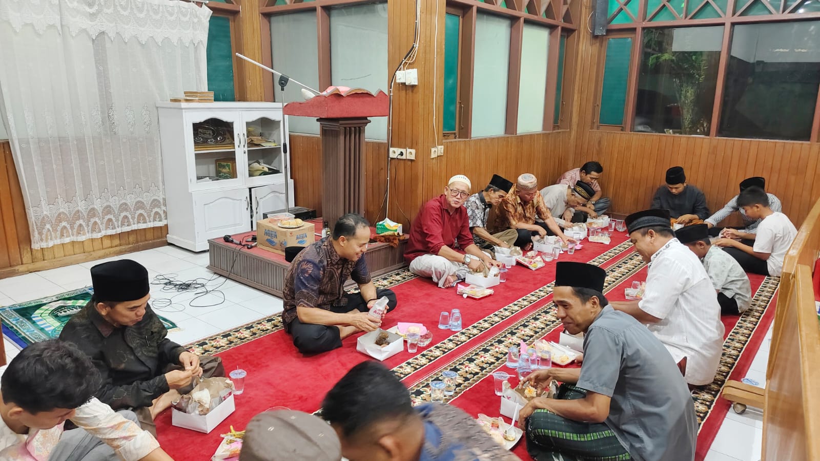 Walau hanya berbuka puasa nasi kotak dengan menu seadanya, namun para jemaah menikmatinya dengan senang hati.