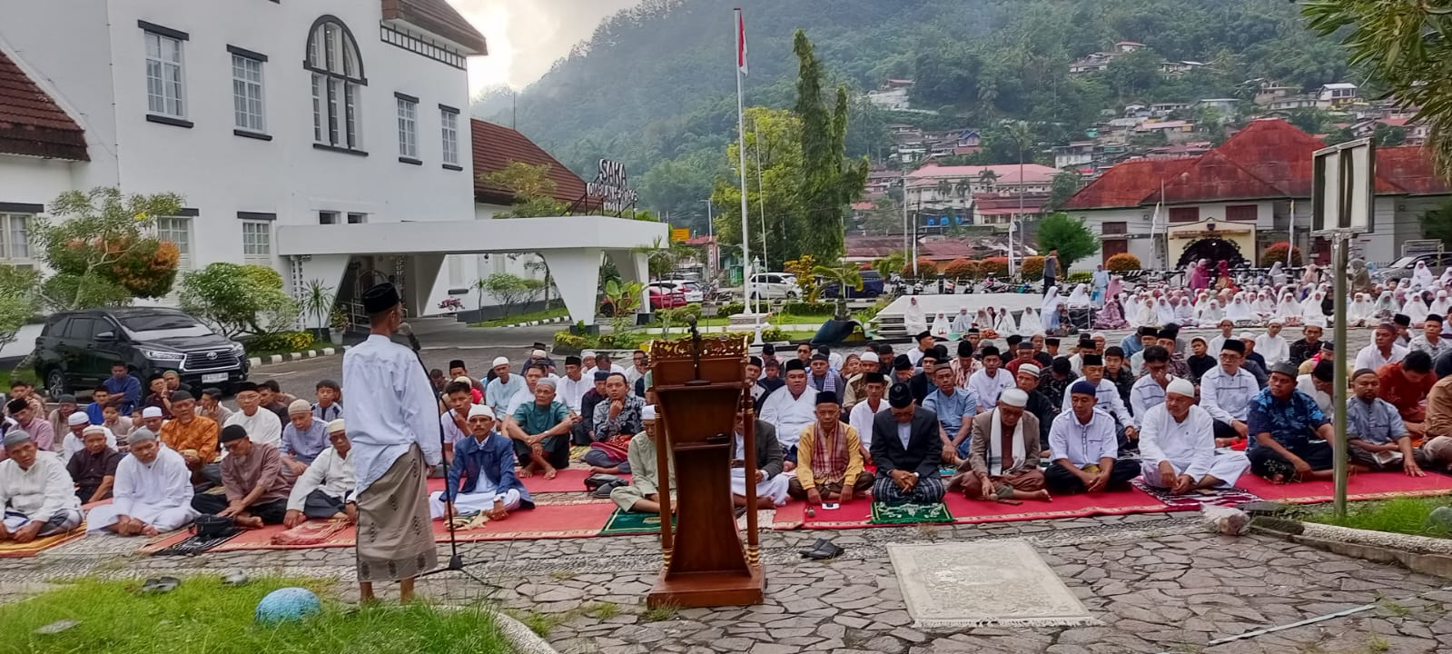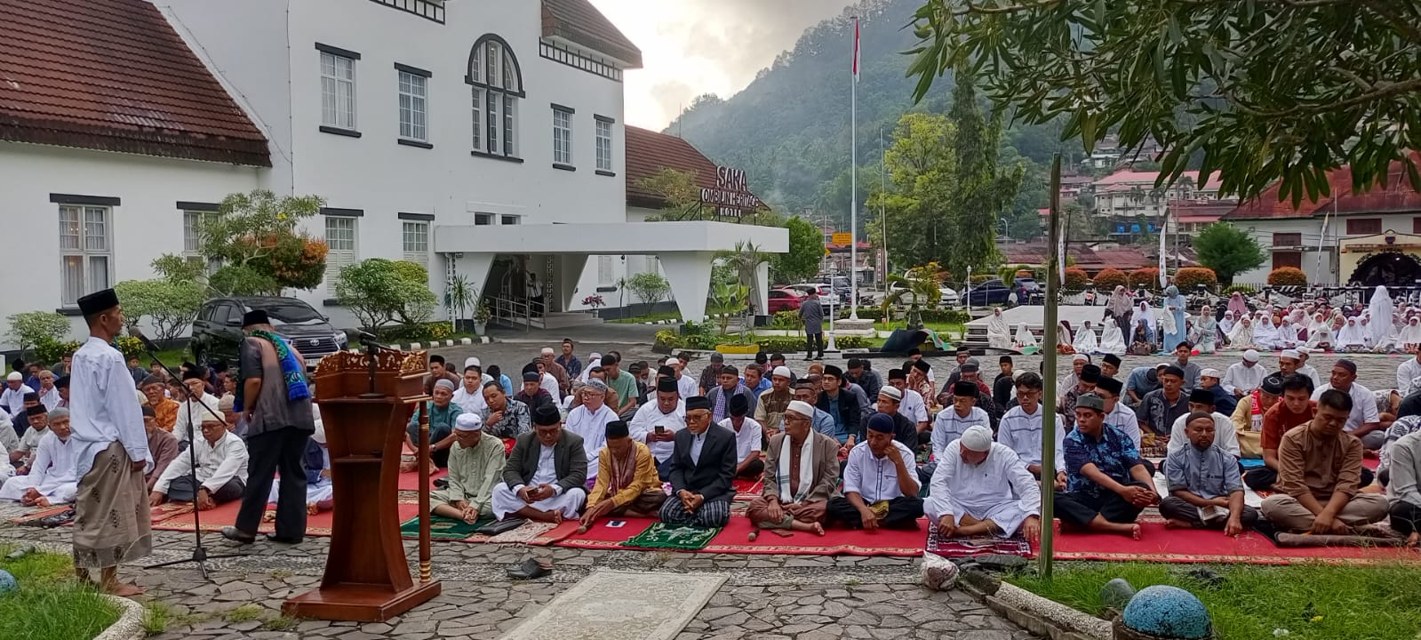 Jama’ah Sholat Ied yang dimulai pukul 08.00 WIB di taman depan hotel berbintang Saka Heritage milik BUMN PT Bukit Asam ini, tidak hanya dari Kota Sawahlunto akan tetapi juga dari daerah Kabupaten tetangga.