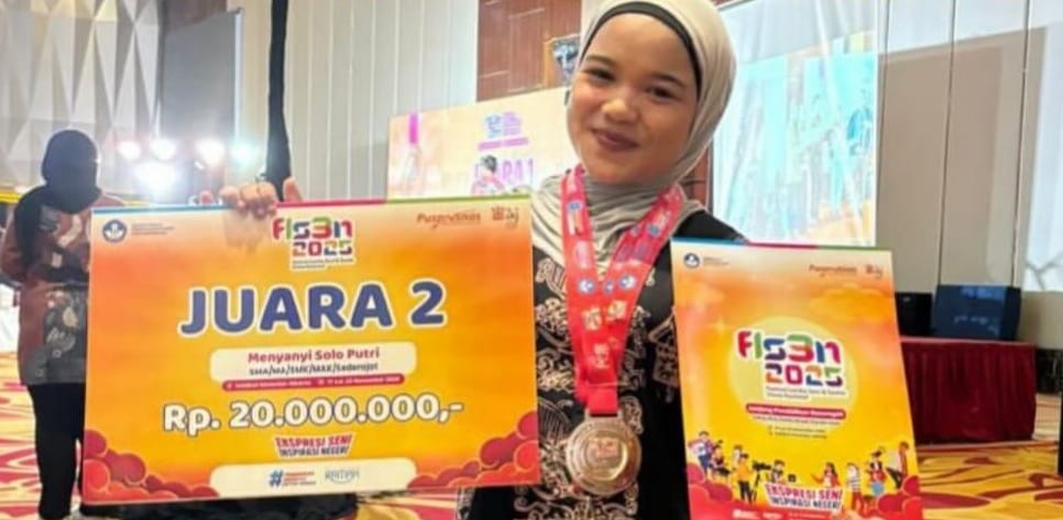 JURNAL SUMBAR| Padang – Setelah sukses mengukir prestasi sebagai runner-up pada ajang Festival dan Lomba Seni dan Sastra Siswa Nasional (FLS3N) Dikmen 2025 tingkat nasional cabang menyanyi solo, Zhifanna Putri Allaysa.