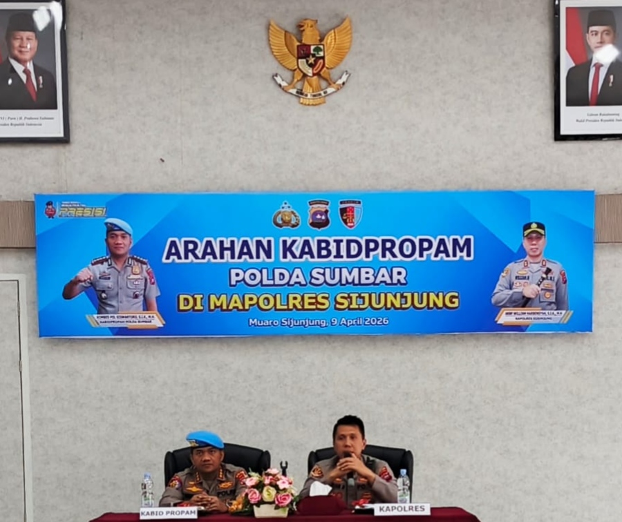 JURNAL SUMBAR| Sijunjung — Kapolres Sijunjung, AKBP Willian Harbensyah, S.IK., M.H., menerima langsung kunjungan dari Team Bid Propam (Bidang Profesi dan Pengaman) Polda Sumbar dalam rangka Operasi Gaktiplin (Penegakan Ketertiban dan Disiplin) di Mapolres Sijunjung, pada Kamis (9/4/2026) pukul 14.00 WIB.