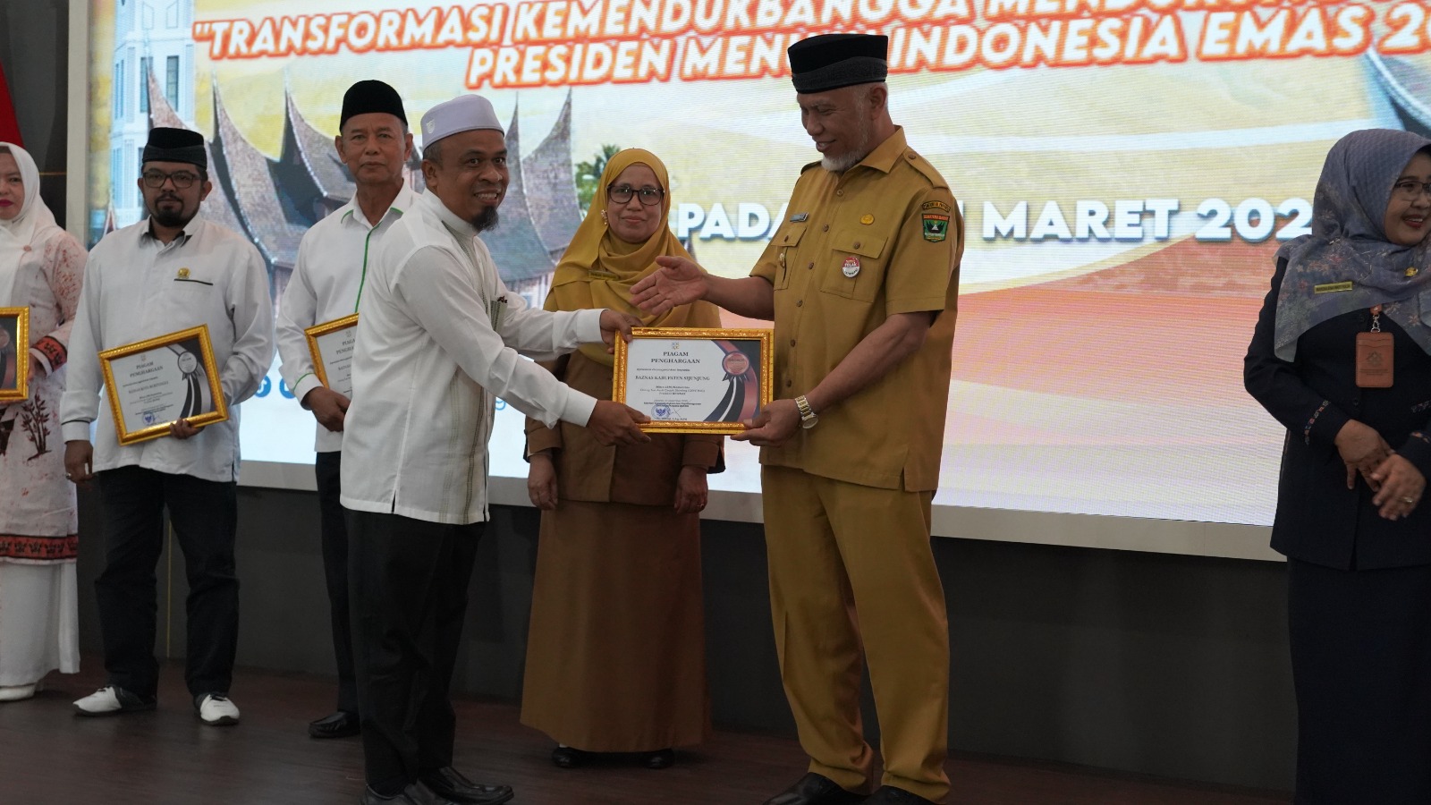 Piagam Penghargaan yang merupakan Apresiasi dari Mentri Kependudukan dan Pembangunan Keluarga/ Kepala BKKBN yang dianugrah kepada BazNas Kabupaten Sijunjung dalam Katagori Mitra /LSM/ Kominitas orang tua asuh cegah stunting (Genting) dengan prediket Bronze itu diserahkan oleh Gubernur Sumatera Barat Mahyeldi Asharullah kepada Ketua Baznas Kabupaten Sijunjung H. Hidayatullah, Lc. MA. pada acara Pembukaan Rakorda Program Bangga Kencana dan Program Prioritas Kemendukbangga/ BKKBN tahun 2026 di Auditorium Gubernur Sumatera Barat di Jalan Sudirman Padang pada Selasa tanggal 31 Maret 2026 lalu.