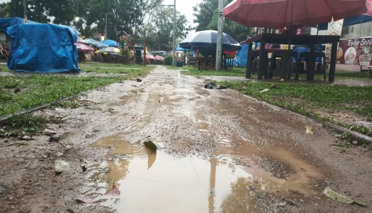 “Kalau hujan begini, siapa yang mau datang? Kami saja susah berjalan di sini, apalagi pembeli,” ujar M (30), salah seorang pedagang kuliner di lokasi itu.
