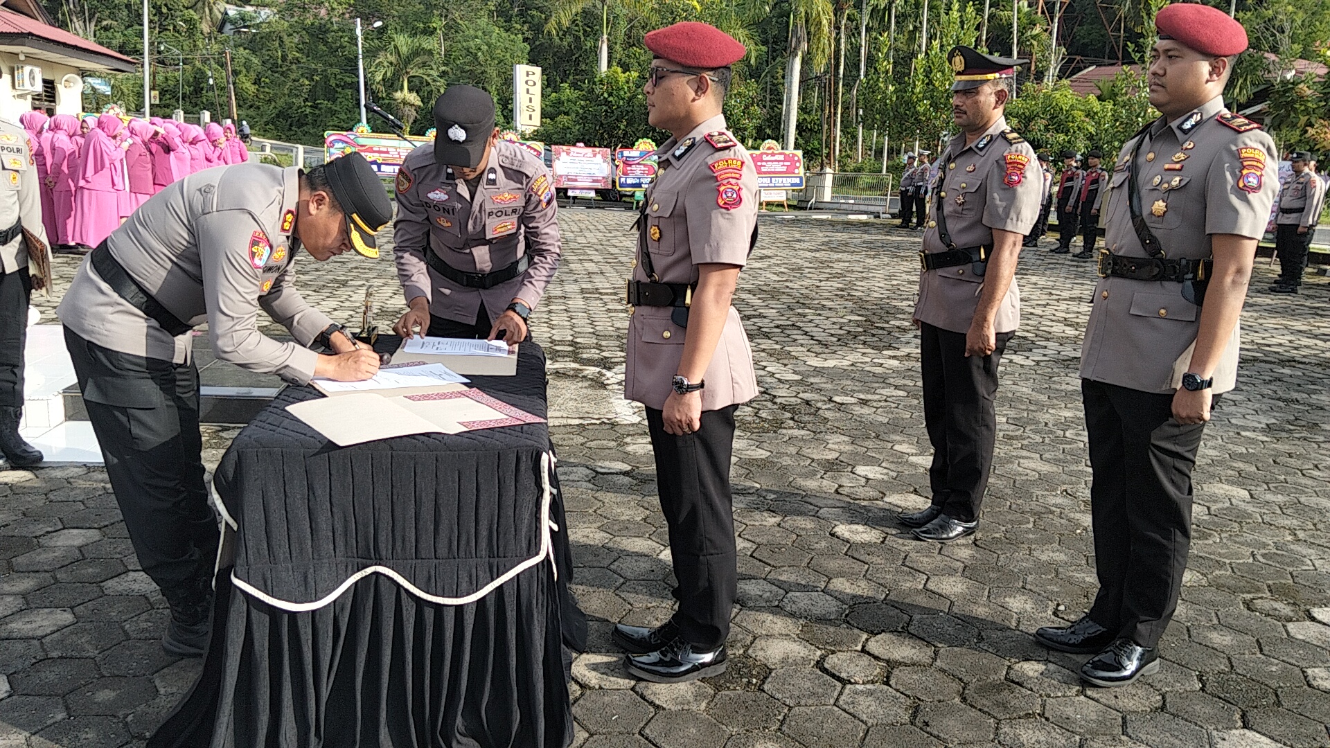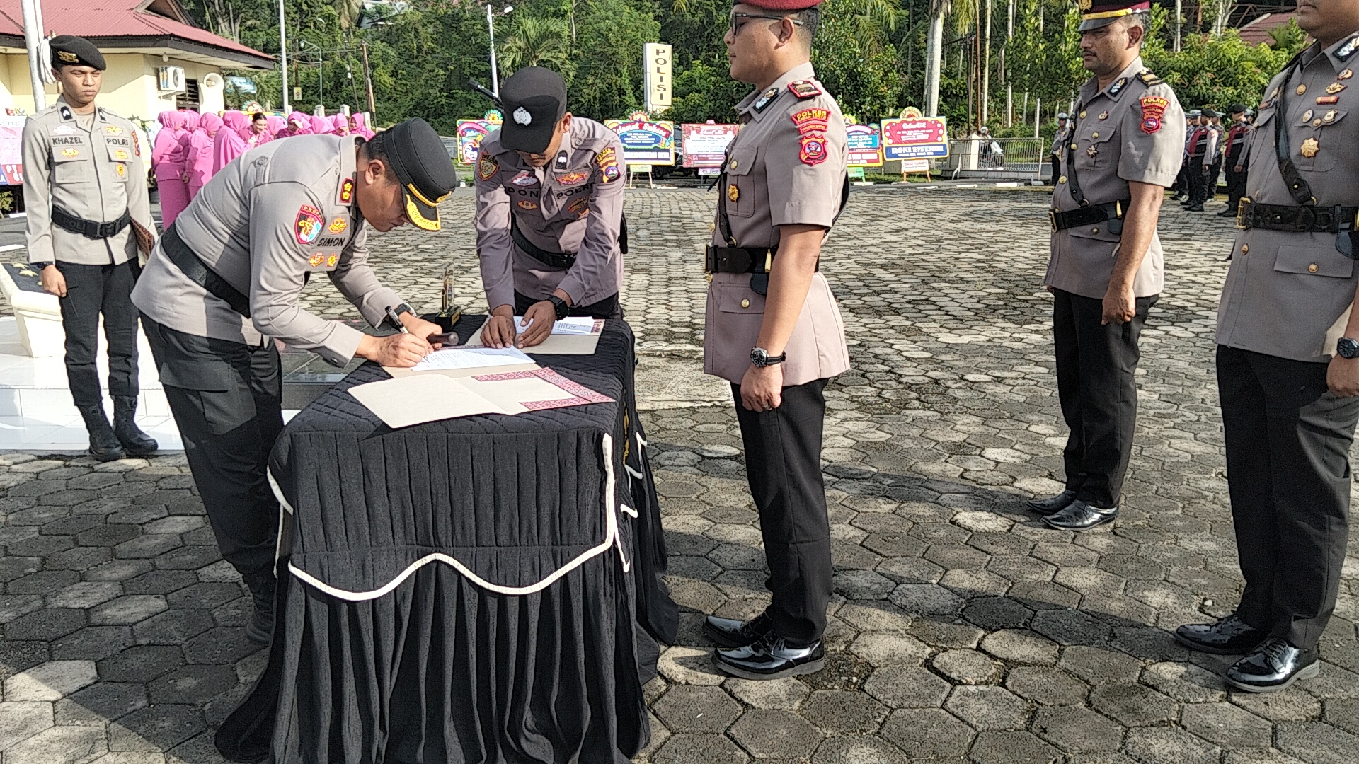 Prosesi Sertijab tiga PJU Polres Sawahlunto itu dipimpin Kapolres Simon Putra Yana. Kegiatan sakral tersebut juga dihadiri Wakapolres Sawahlunto, Kompol Riswan Lukpi, S.H., M.H, PJU, Kapolsek, anggota Polres Sawahlunto dan Bhayangkari Sawahlunto.