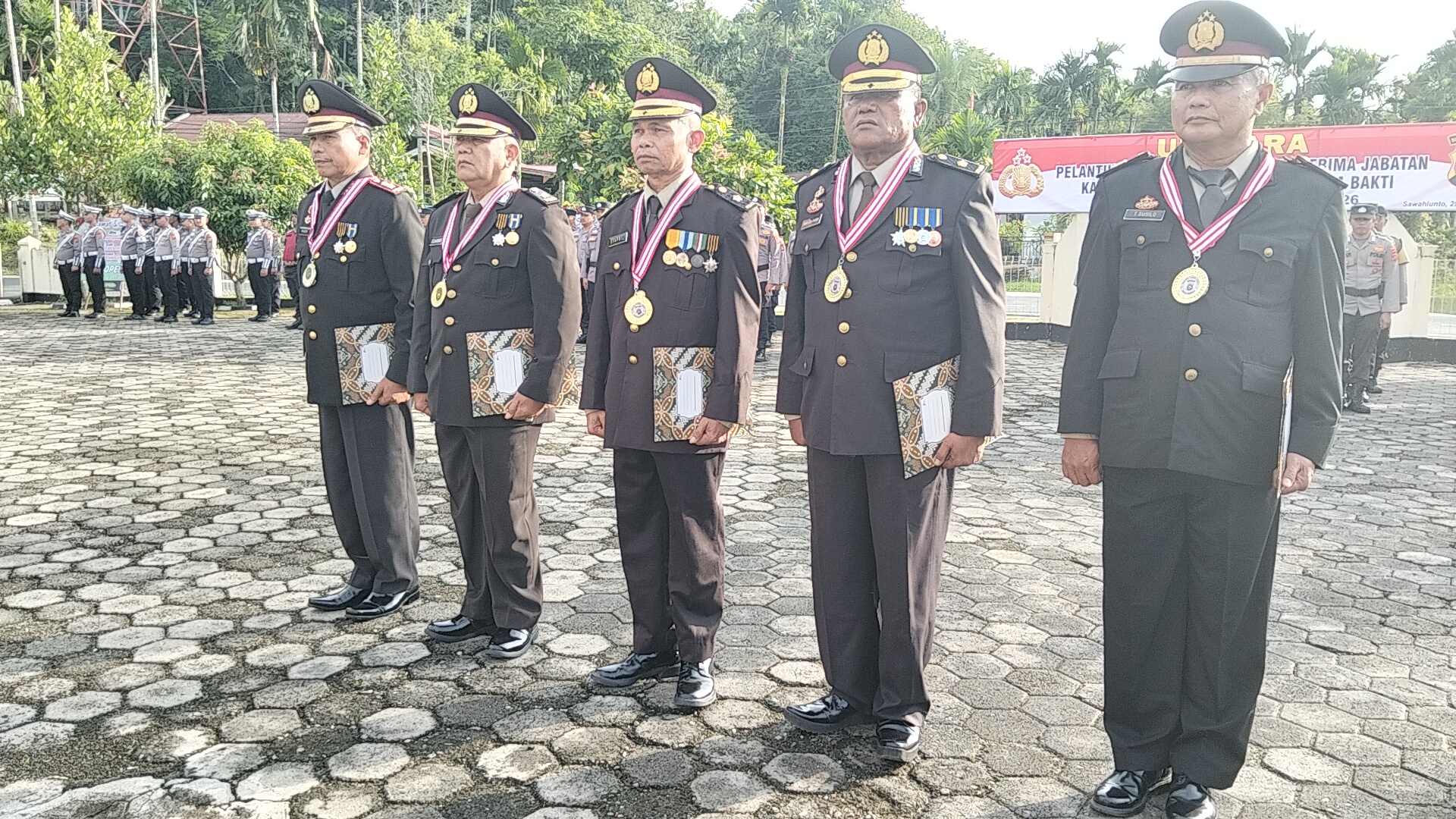 Sertijab dan Pelantikan Mewarnai Pelepasan Purnabakti Kompol Rudi JA Purba dan Empat PJU lainnya di Mapolres Sawahlunto