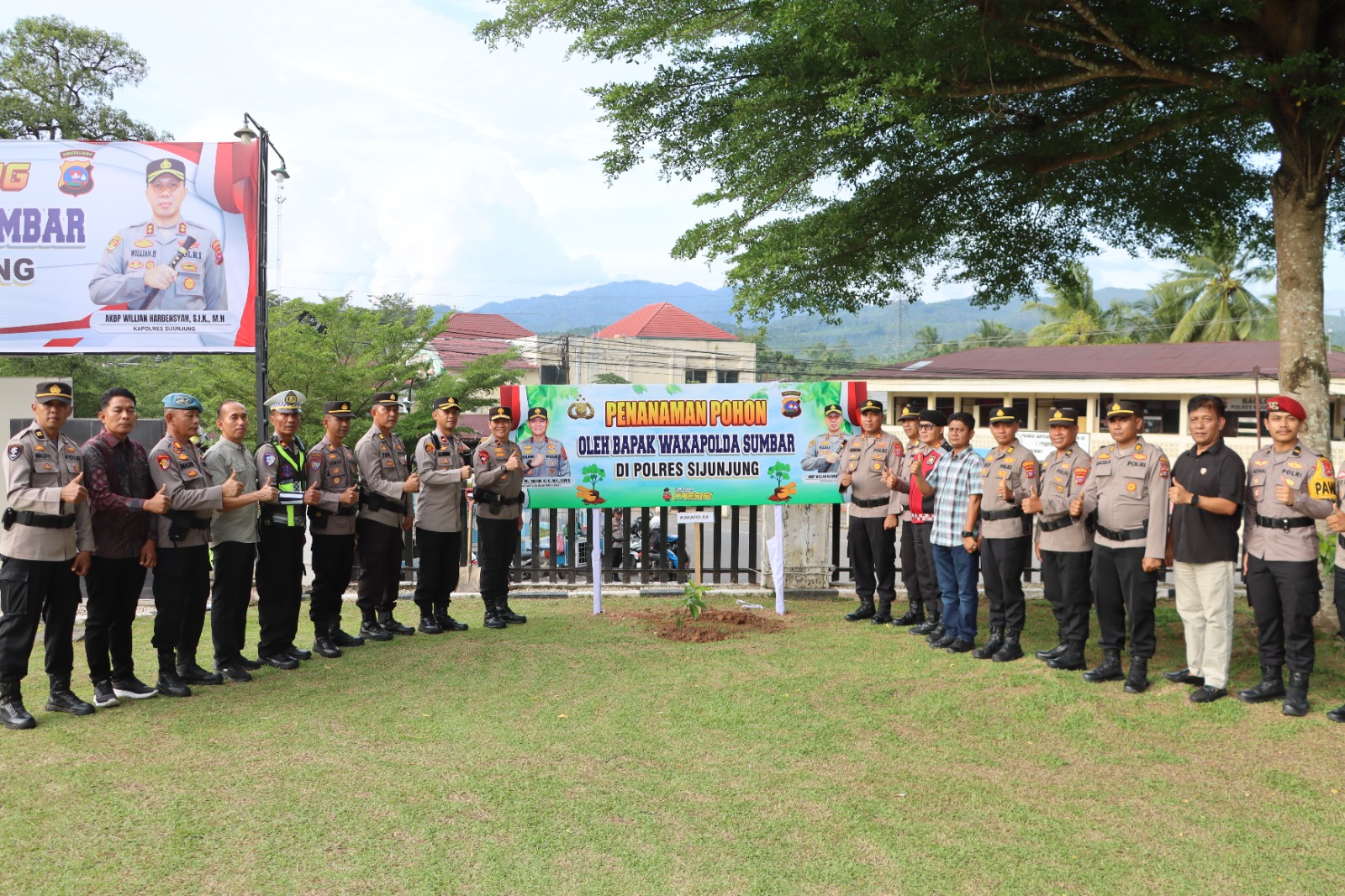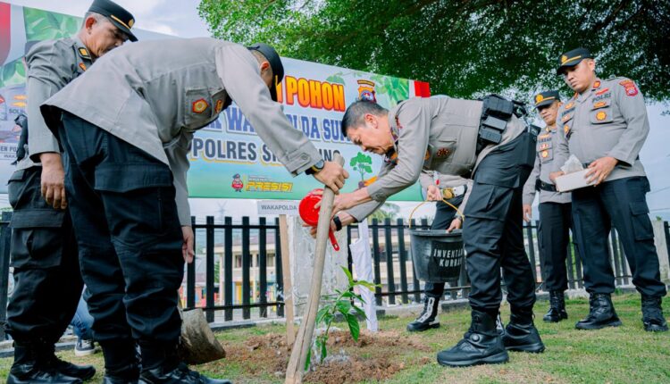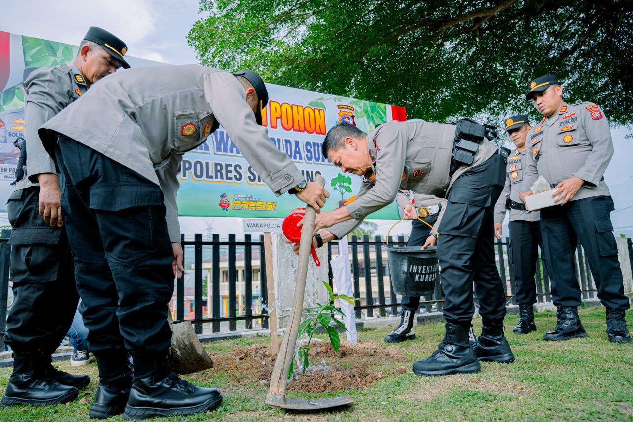 Waka Polda Sumbar dengan didampingi oleh Waka Polres Sijunjung bersama PJU Polres melakukan langsung penanaman pohon di sepanjang pinggiran lapangan apel Mapolres Sijunjung, dan kegiatan ini menjadi bagian dari komitmen Polda Sumbar dalam menjaga kelestarian alam sekaligus menjadi contoh nyata kepada masyarakat akan pentingnya menjaga lingkungan.